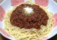 (写真)どうです?娘たちがお代わりして食べたお父さん自慢の『ミートソース・スパゲッティ』です。学生時代に結構、自炊してましたし…包丁の扱いは、中学生時代に母から厳しく仕込まれました^^;