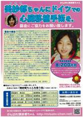 3学期いっぱいナルゼミにも募金箱を設置します。500円でも1,000円でも結構です。皆様からの温かいお気持ちをお待ち致しております。責任をもって「美紗都ちゃんを救う会」事務局に振込ませて頂きます。何卒、ご協力を宜しくお願い申し上げます。