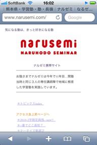 iPhone4が話題です。ドコモ側ではエクスペリアだったですかね?!…携帯も第三世代に入ってきました。 お気づきの方もおられるかと思いますが、ナルゼミの携帯サイトもスマートフォンに対応してHTMLタグを徐々に書き換えています。 どこが変わったか? 一般の携帯…左右に隙間ができたので文字が画面いっぱいに広がらなくなりました。 パソコン…携帯同様、文字が画面の横いっぱいに広がらず、中央に縦長の長方形で見えるようになりました。 スマートフォン…開いた瞬間から左右の幅が画面ジャストサイズになっているので広げたり縮めたりしなくても縦スクロールだけで全ての文字が読めるようになりました。 リンク先 *次へ *前へ *top pageへ *topics indexへ