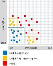 図の青い部分に入る受験生が合格となります。※青いエリアは正方形と決まっています。