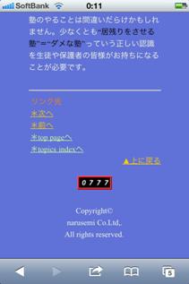トップページにショートカットを作ってる“居残り撲滅宣言”ってページです。 カウンターの777はたまたま出た数字として…すごいアクセス数に驚きました。それだけこのタイトルには皆さん関心がおありだということですね。 3月3日の県議会でも教育長が深夜の通塾について「学校の教育活動や基本的生活習慣の育成等に影響があるとすれば決して好ましいことではない」と答弁されているわけですから、塾業界はこれを真摯に受け止め居残り自粛に取り組まなければなりません。 学校や教育委員会、教育長まで敵に回して居残りをさせるというのなら、それはそれで自己責任ですが…。 リンク先 *次へ *前へ *top pageへ *topics indexへ