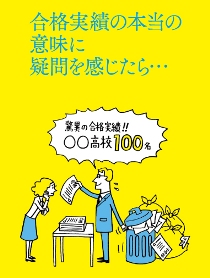 携帯でカンニングした浪人生に関する関連記事にこんなことが書かれていました。 記者「犯人の生徒は実際に合格していない私立大学を合格したと偽って予備校に報告していたそうだが、その点に関して予備校の見解を聞きたい」との取材に対して… 予備校側「合格校に関しては自己申告によるもので、それ以上の精査はしない。たとえ虚偽の報告があったとしても予備校側に責任はない。」という内容のコメントを出しています。 思い切ったことを言われたもんだと思いますか?でも、これって塾(予備校)業界の標準的な感覚です。だって合格者数なんて所詮確かめようのない数字なので…。 リンク先 *次へ *前へ *top pageへ *topics indexへ
