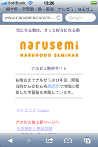 ■ガラケー=ガラパゴスケータイの略。独自の進化を遂げたガラパゴス諸島の動物に例えて独自の方向へ進化した日本の携帯を指す。 とうとう、スマホの出荷台数がガラケーに並んだそうですね^^; ナルゼミの携帯サイトは基本的にスマホの普及を想定したスマホサイトです。「わざわざパソコンを開いて塾のホームページなんてみない!」私の割り切った考え方がそういう方向にサイトを進化させました。 そういう意味では、ナルゼミのサイト自体がガラパゴスサイト=ガラサイトなのかもしれません^^ …なんて話をしたら、ナルゼミ自体がガラパゴス塾なんでいいんじゃないですか?と突っ込まれました^^; リンク先 *次へ *前へ *top pageへ *topics indexへ