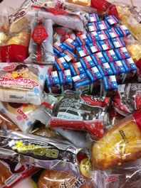 四つの中学のスケジュールが重なると一度に100個以上のパンとジュースを買うことなり、スゴい量です^^;