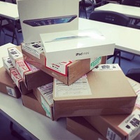 本日より対象となる新中学1年生と新中学2年生の皆様にiPad miniをお渡し致します。