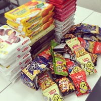 写真のオヤツは前半3日分…お茶やジュースはこの期間だけで250本以上用意しています。 15分程度のオヤツタイムはみんな笑顔で楽しそうですが、それが終わるとビシッ!と切り替えて黙々と頑張ってくれます。それにジュースをこぼしたりゴミを散らかしたりする子もいませんし、私たちにちゃんと「ありがとうございます!」「ごちそうさまでした!」って笑顔で言ってくれるお子さんばかりです。 同業の方からは「お金かかるでしょう!?」なんて言われますが「経費」は生きたお金を指す言葉だと思っているので惜しまず使うようにしています。 リンク先 *次へ *前へ *top pageへ *topics indexへ